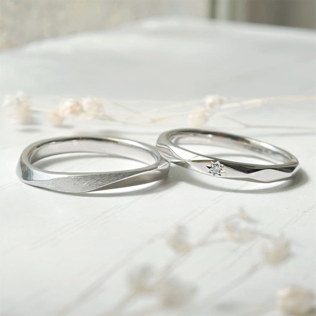 プラチナ900素材の手作り結婚指輪。