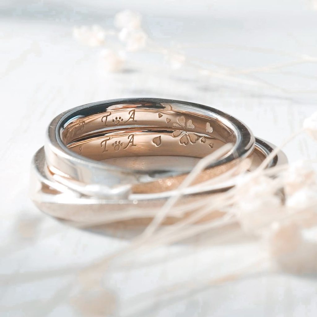 K18シャンパンゴールド素材で手作りいただいた結婚指輪。