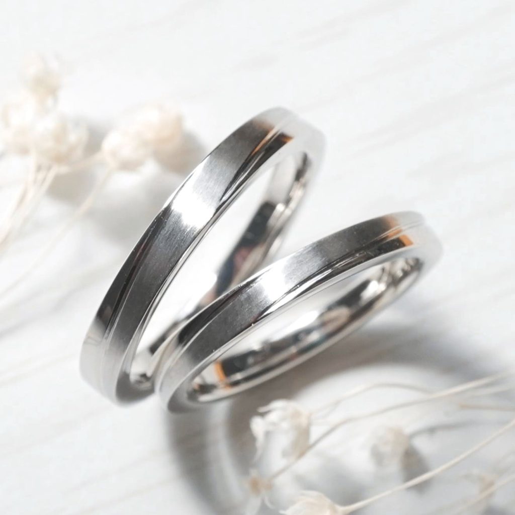 ストレートデザインにラインを加えた手作り結婚指輪。 素材はどちらもプラチナ900です。