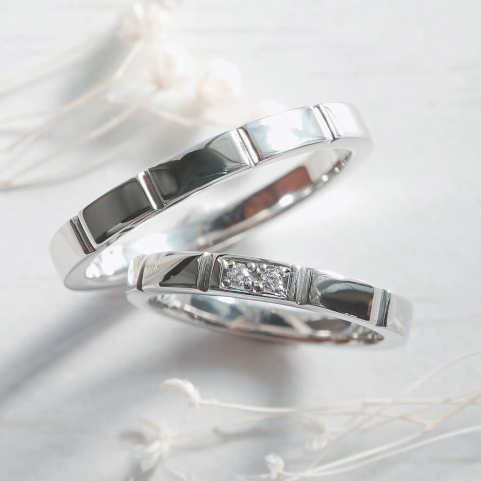 奥様のリングにはダイヤモンド2石留めています。