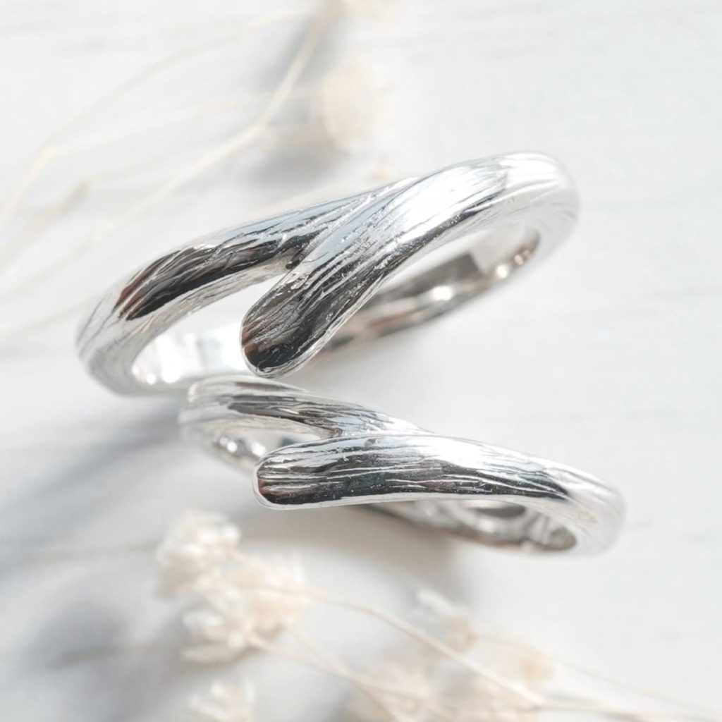 プラチナ素材で横筋を加えた結婚指輪 どちらも鏡面仕上げ