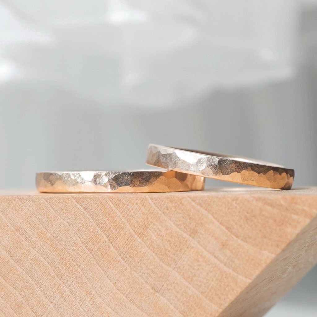 どちらもK18ピンクゴールド ハンマーで施した細かい槌目模様のデザイン 表面はつや消し加工