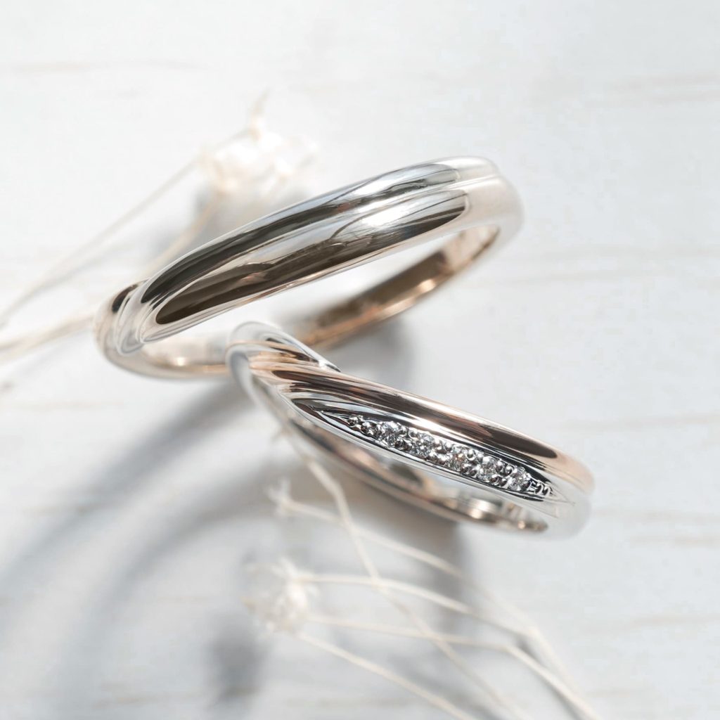 U字のコンビネーションリング メンズリングはk18ブラックゴールド×k18シャンパンゴールド レディースリングはk18ピンクゴールド×プラチナ