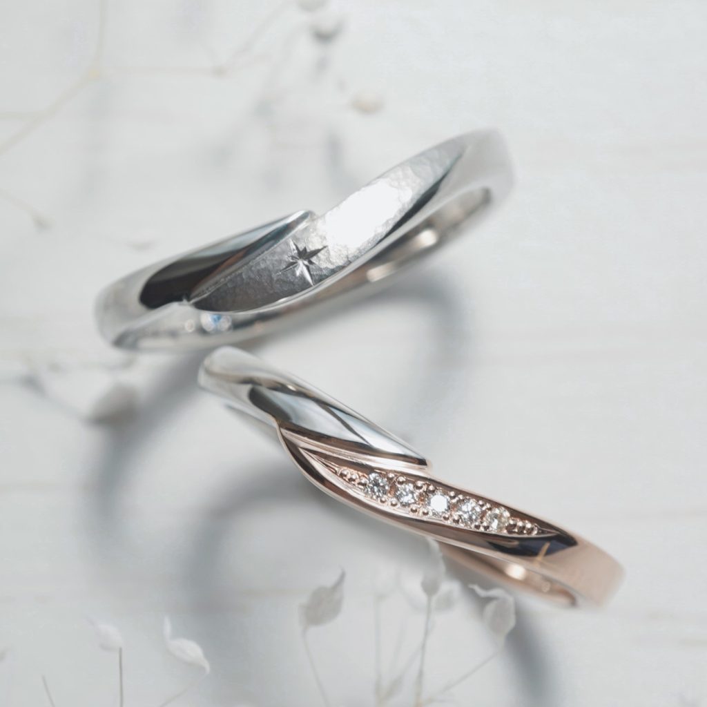 Lady'sリングはPt900とK18ピンクゴールドのコンビネーション。