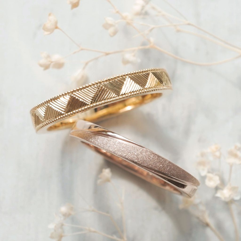 Lady'sリングはK18ラベンダーゴールドを使用。