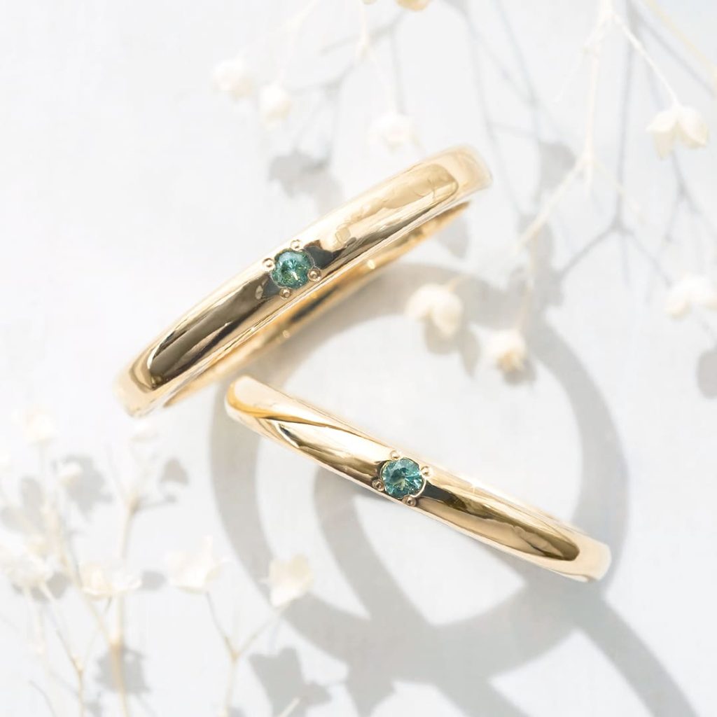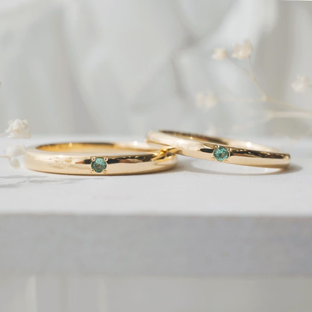 エメラルドを1石留めたシンプルな平甲丸デザイン