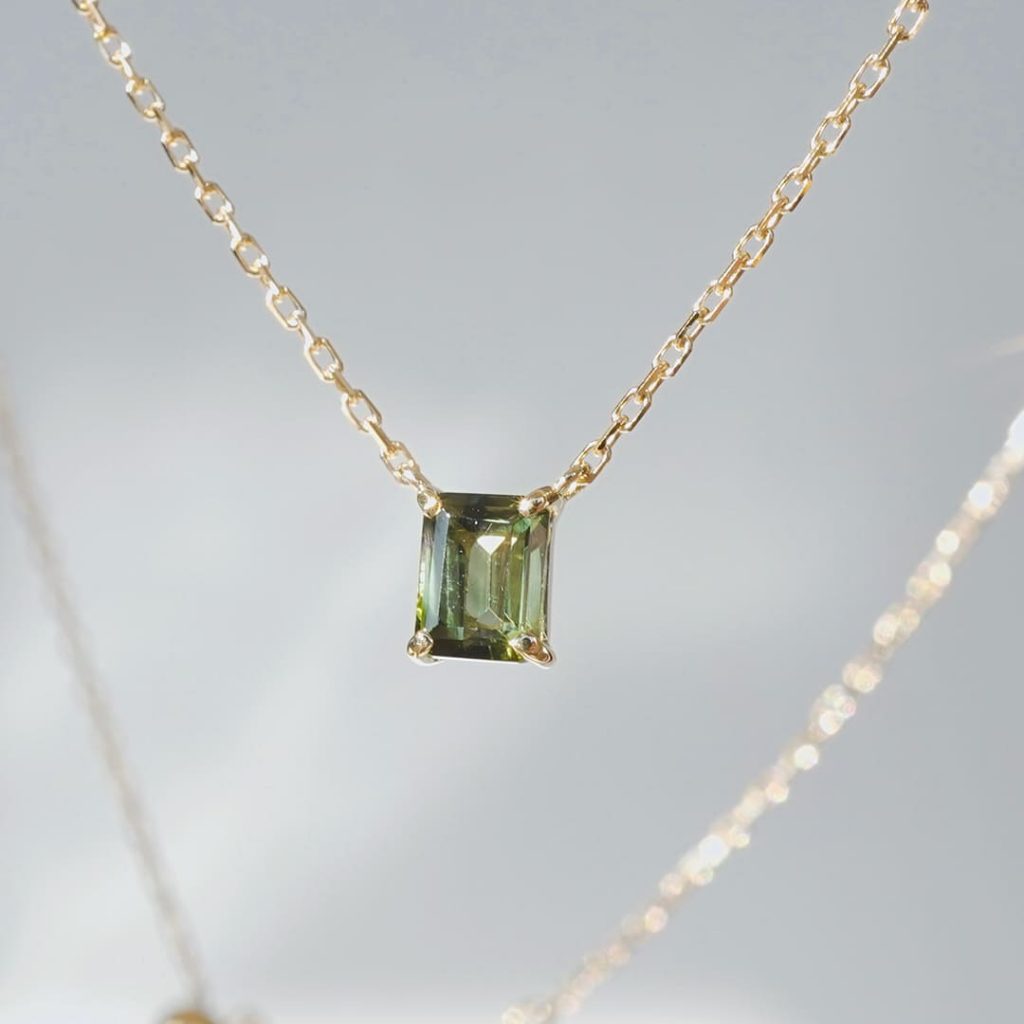 渋い緑色がモノトーンな服装に合いそうなトルマリン。 枠素材はK18イエローゴールド。 宝石サイズ:縦約6mm 横約5mm ※お使いの端末や撮影時の光加減などによって、実際の色味と多少異なって見えることがあります。予めご了承ください。 ※サイズ感・色味などでお悩みの方はお問合せください。