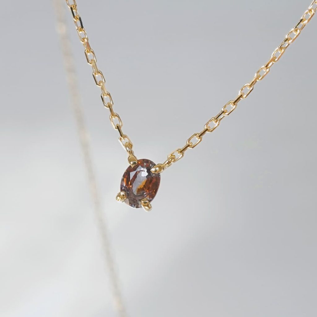 バイカラーサファイア。赤色と茶色の入り混じる石です。 素材はK18イエローゴールド素材。 宝石サイズ:縦約5mm 横約4mm ※お使いの端末や撮影時の光加減などによって、実際の色味と多少異なって見えることがあります。予めご了承ください。 ※サイズ感・色味などでお悩みの方はお問合せください。