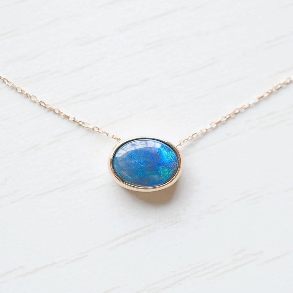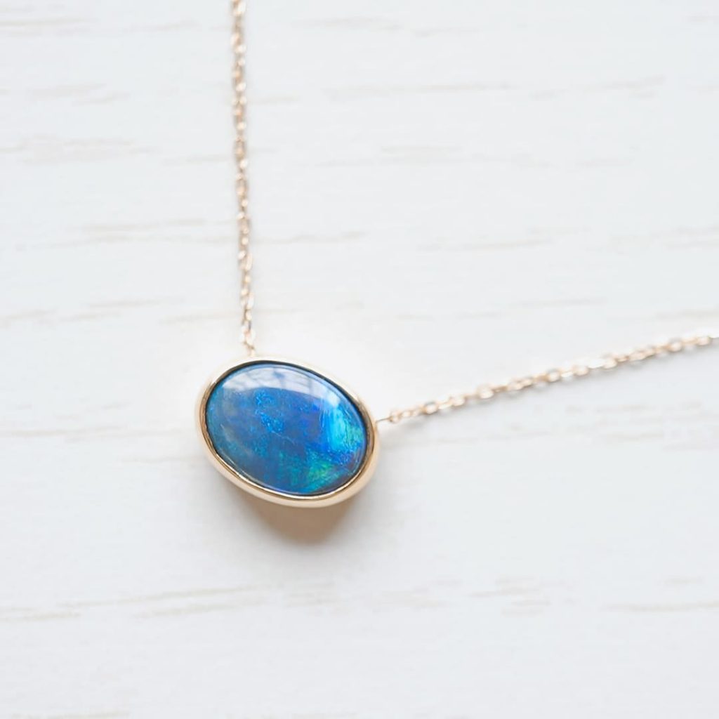 鮮やかな水色と薄い緑色が涼し気で可愛らしいブラックオパール。
