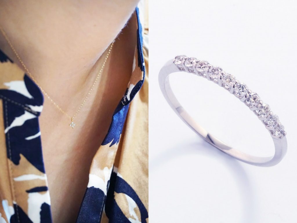 ①K18ダイヤモンドネックレス or ②PT900ハーフエタニティリングを条件付でプレゼント致します。